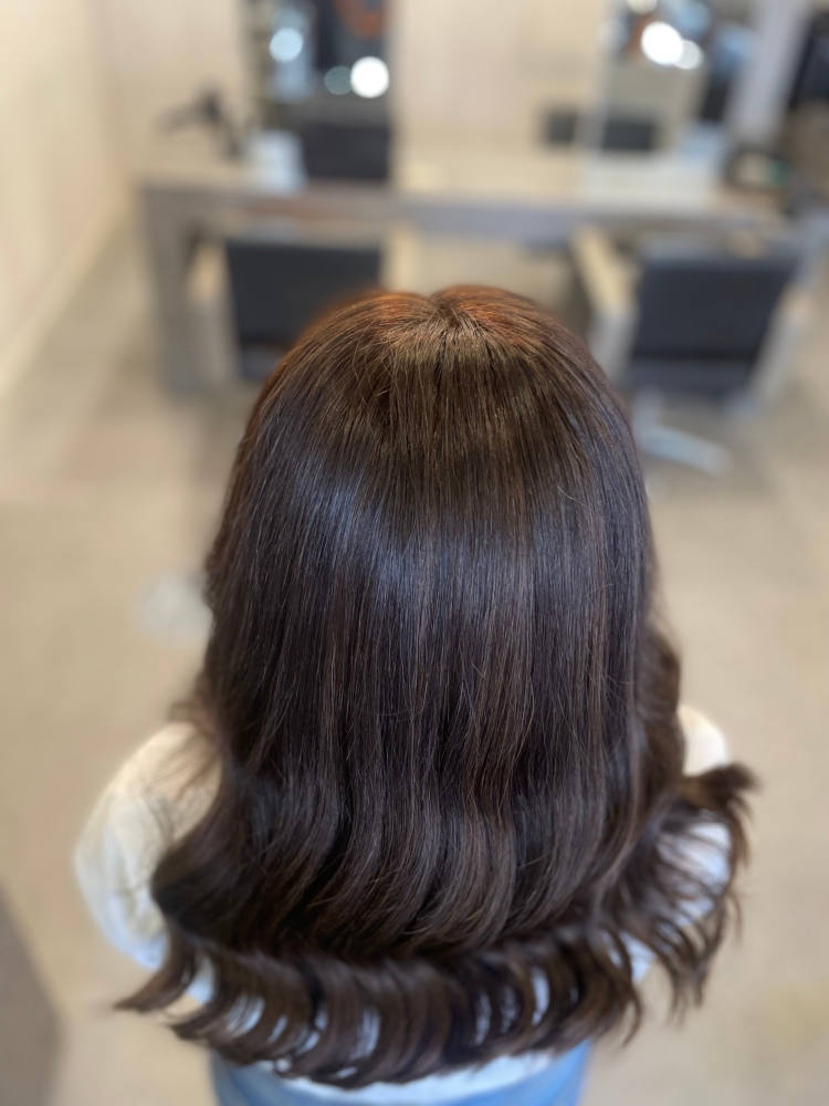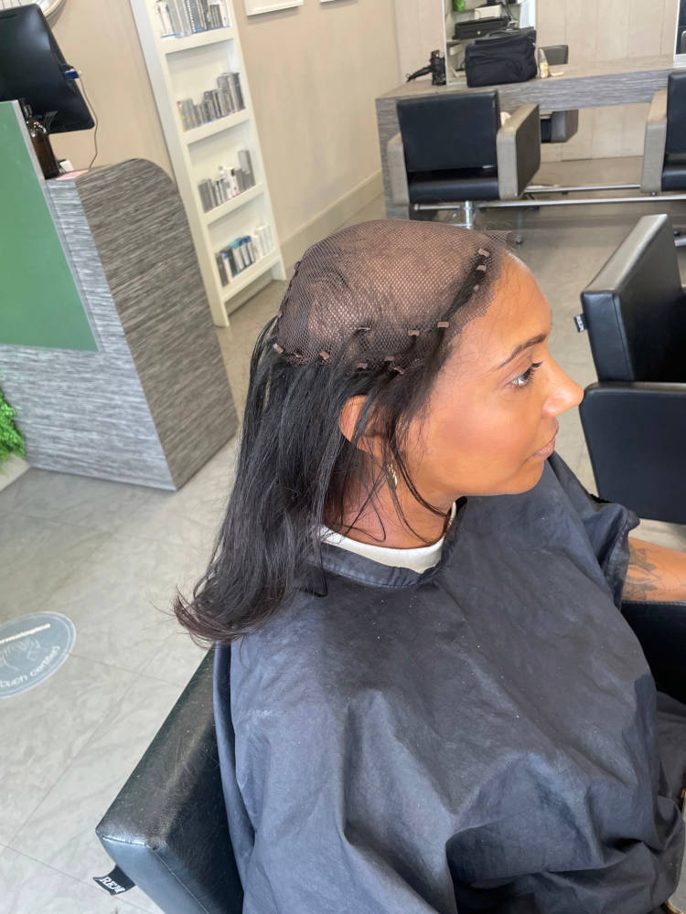Our mesh integration is designed using a breathable netting which is placed over the thinning or balding hair. This netting mimics your scalp, acting as a ‘second skin’ which is then used to fit and colour-match the desired colour to human hair extensions.